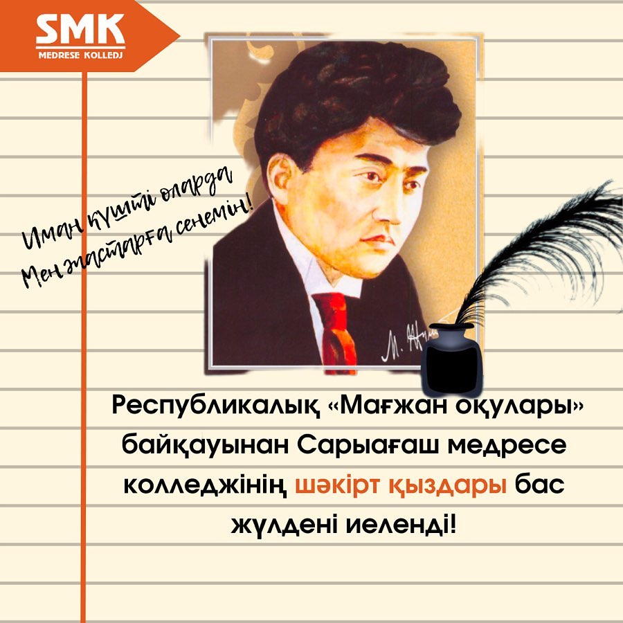 Күні кеше Сарыағаш медресе колледжі қыздар бөлімінің шәкірттері Magzhan.kz білім порталы ұйымдастырған республикалық қашықтықтан өткізілген “Мағжан оқулары” байқауына қатысып жүлделі орындарға ие болды.
