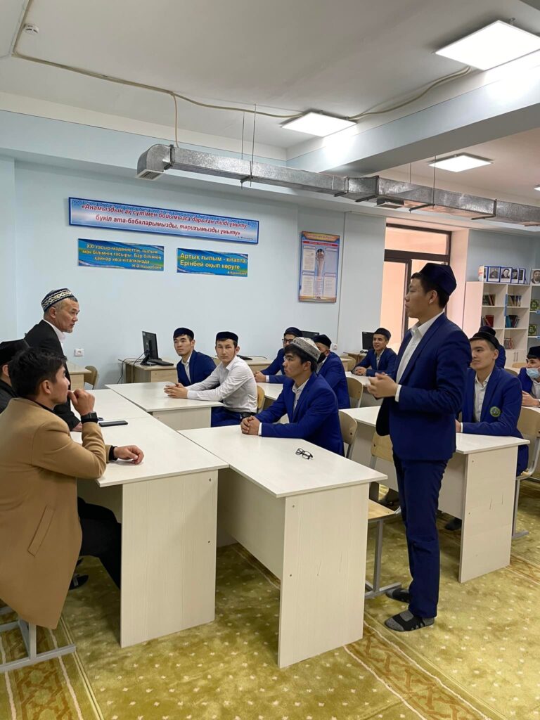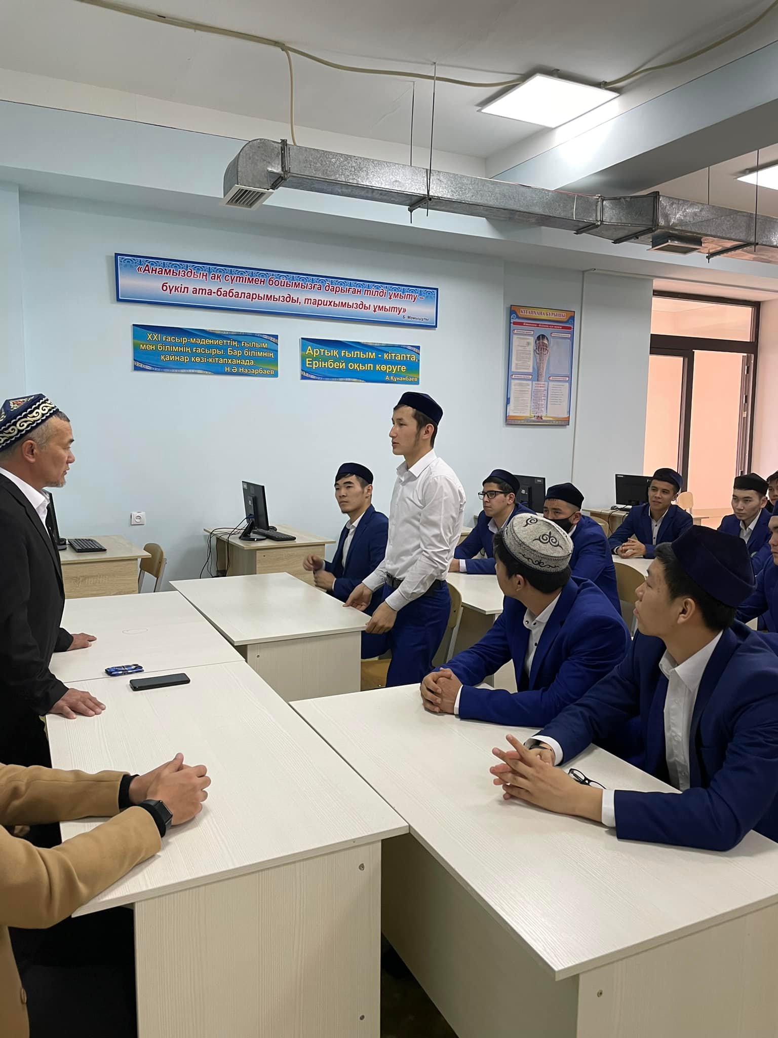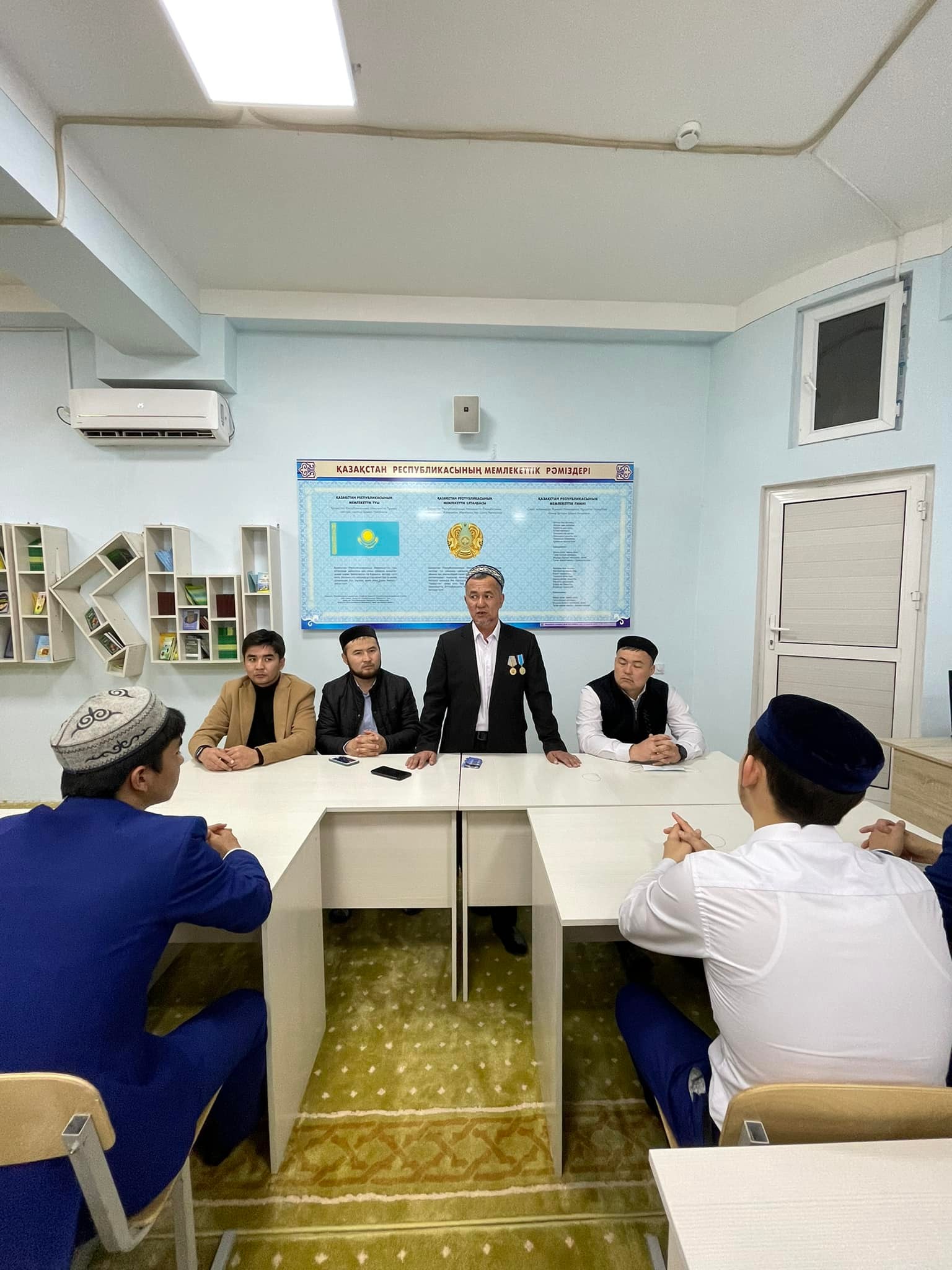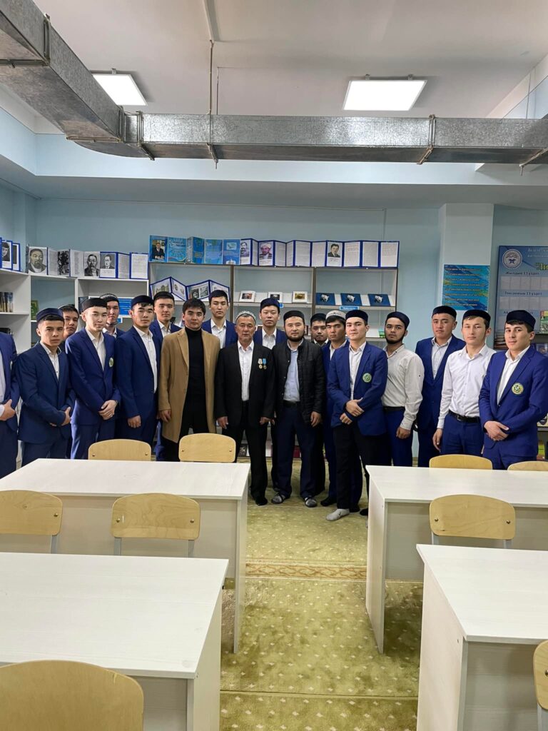 25.02.2022 ж. Колледж студенттерімен «Рахмет саған, ауған соғысының жауынгері» тақырыбында кездесу өтті.Кездесуге ауған соғысы ардагері Ешимов Толқынқожа Ходжабергенұлы қатысты.Кездесу барысында соғыста болған жағайларды,ондағы қиындықтарды және соғыс зардабынан дүниеден озған ардагерлерді еске алды. Сондай-ақ жастарды отанды сүюге және тыныштық пен бейбітшіліктің қадірін бағалауға, тілін , дәстүрін, дінін құрметтеуге баулитын терең тәрбиелі ақылымен бөлісті. Кездесу соңында шәкірттер өздері қызыққан сұрақтар қойып, қанағатты жауаптарын алды.