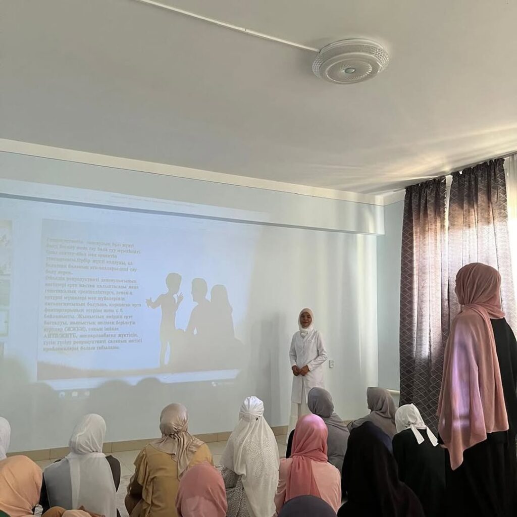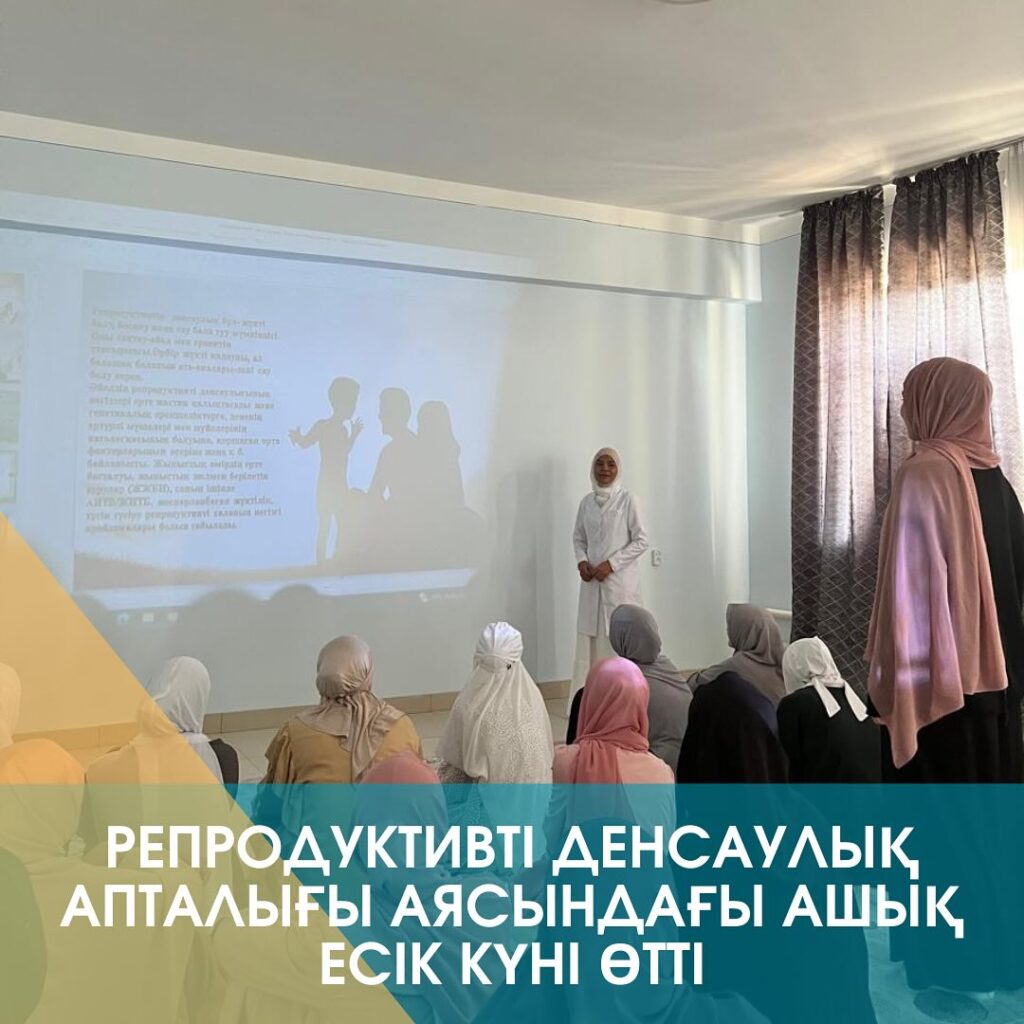 Апталық аясында Түркістан облысы Сарыағаш ауданы, Сарыағаш медресе колледжінде репродуктивті денсаулықты қорғауға бағытталған ашық есік күндері ұйымдастырылды. “ Азия мед” медициналық орталығының білікті мамандары мен медресе дәрігері Далиева Гулжамила мен