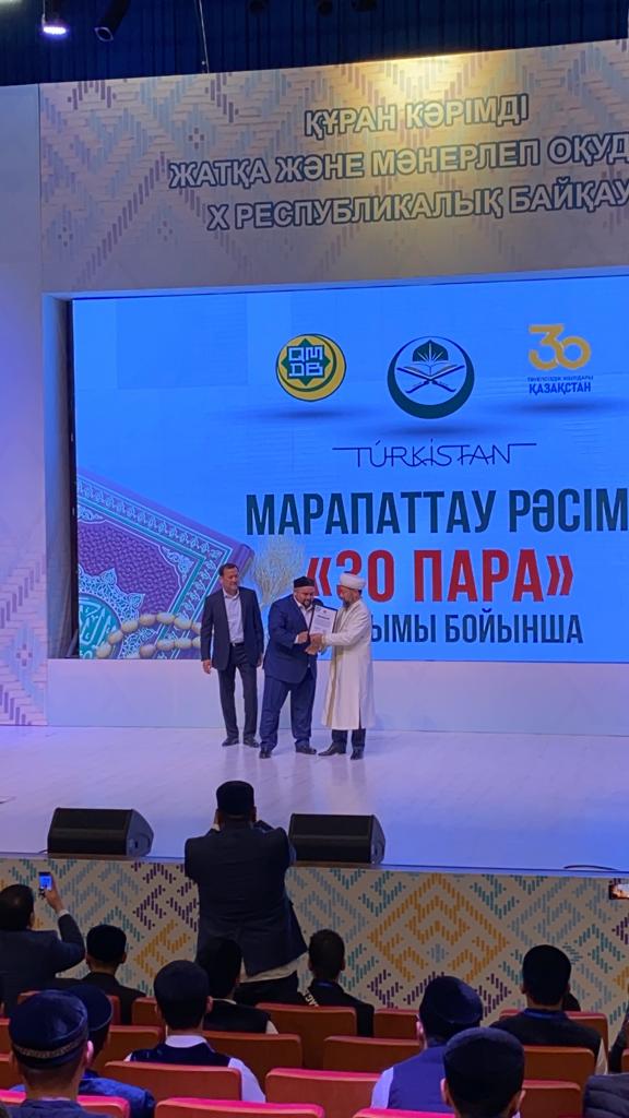 Ислам әлеміне танымал «Әл-Азhар» университетінің жетекші шейхтарының бірі Мисбах ибн Ибраһим Мухаммадқа Құран Кәрімді толық тапсырып, ғұлама-хафиздардың тізбегімен келе жатқан 10 қырағатты меңгергені үшін Зейнул-Абидин Абдужаппарұлын Бас мүфтиіміз Наурызбай қажы Тағанұлы ҚМДБ атынан құттықтап, сый-құрмет жасады.