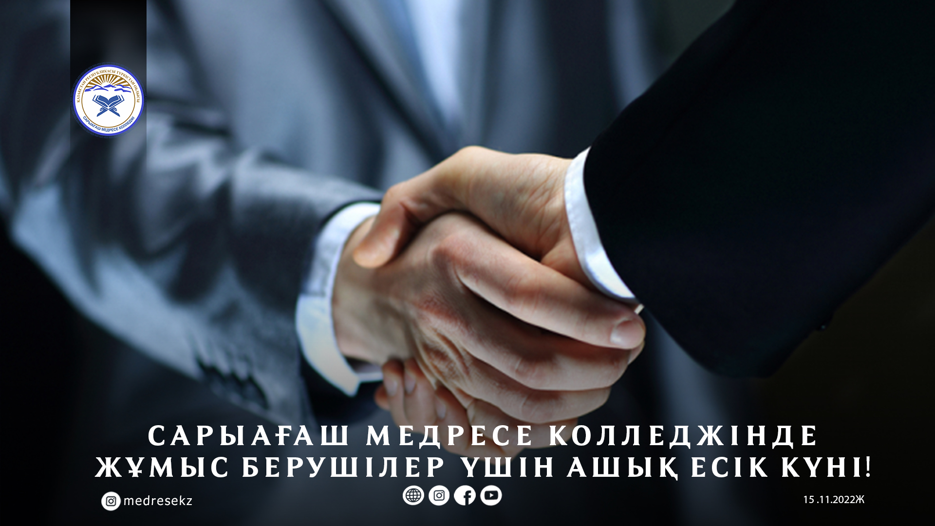 Қазақстан Республикасы Оқу-ағарту министрлігінің ұйымдастыруымен 2022 жылғы 15 қараша күні республика бойынша техникалық және кәсіптік, орта білімнен кейінгі білім беру ұйымдарында өткізілетін «Жұмыс беруші күні» ашық есік күні өтеді. ҚМДБ-ның Түркістан облысы бойынша өкілдігі, аудандық орталық және қалалық мешіттерінің бас имамдарын шақырамыз.