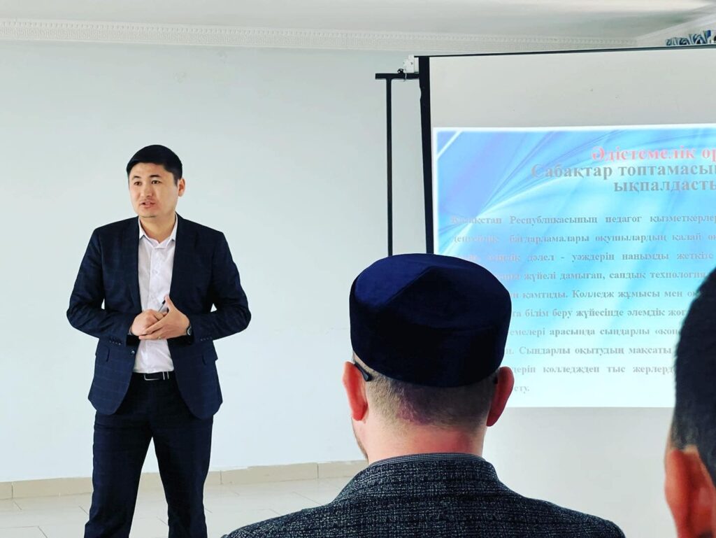 Колледжіміз әдіскерлері Қалмұратов Темур мен Сманова Нуржамал ұстаздардың ұйымдастыруымен оқытушылардың кәсіби-педагогикалық деңгейін ұдайы көтеру, олардың теориялық білімі мен әдістемелік біліктілігін үздіксіз жетілдіру, модульдік оқыту бағдарламасының мақсаттары, оқытудың озық әдіс-тәсілдері, тәжірибе барысында пайдалануға бағыттау, жаңа технологияларды, идеялар мен көзқарастарды саралау, шығармашылық жұмыстарына жол көрсету, білім мен бәсекеге қабілетті ұрпақ тәрбиелеу мақсатында «Тиімді әдіс-тәсілдер — сапалы білім кепілі» атты тақырыпта семинар өткізілді. Семинарды жалпы және әлеуметтік пәндер кафедрасы оқытушысы, әдіскер Қалмұратов Темур жүргізді. Компьютерлік технология арқылы 10-нан аса әдіс-тәсілдердің дәрісте қолдану мақсаттарын түсіндіре отырып, тәжірибеде көрсетті.