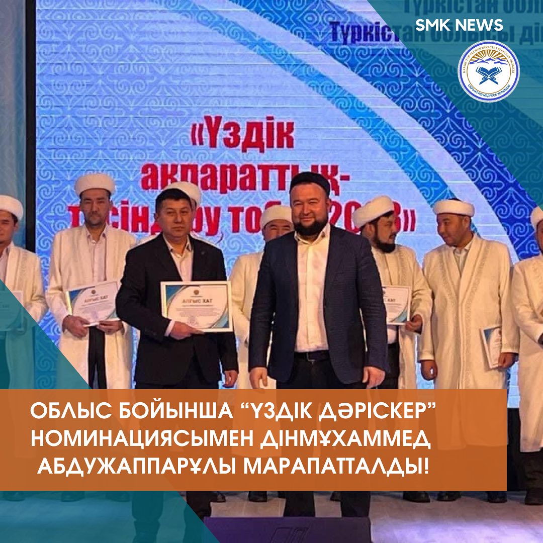 🔰Түркістан облысы дін істері басқармасының ұйымдастыруымен “Үздік ақпараттық-түсіндіру тобы” байқауының жеңімпаздарын марапаттау рәсімі өтті. 🔰12 номинация бойынша жеңімпаздар анықталған жиында Сарыағаш медресе колледжінің директоры Сманов Дінмұхаммед Абдужаппарұлы “Үздік дәріскер” номинациясының