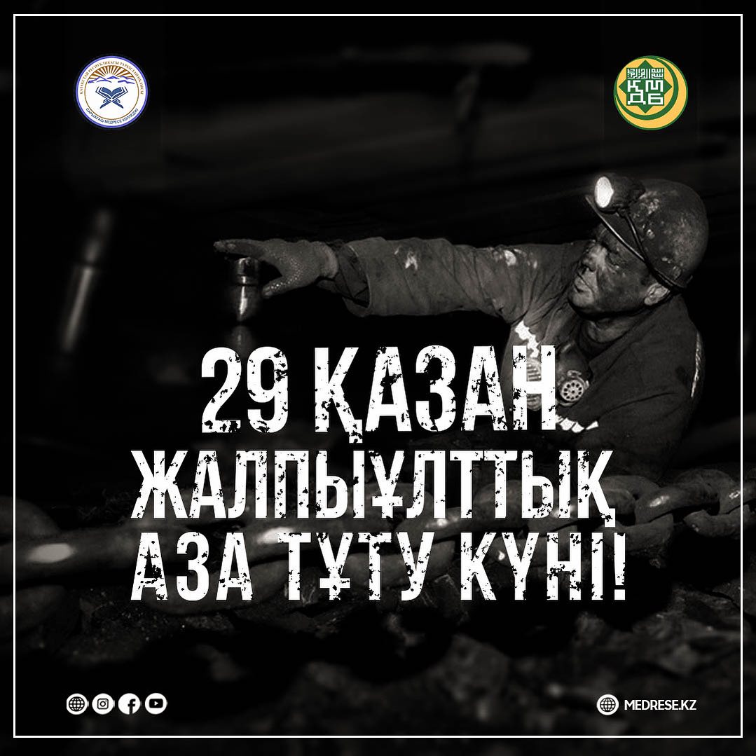 ◼️Қарағанды облысындағы Костенко атындағы шахтада болған апат салдарынан адамдардың қаза табуына байланысты елімізде 29 қазан Жалпыұлттық аза тұту күні болып жарияланды.