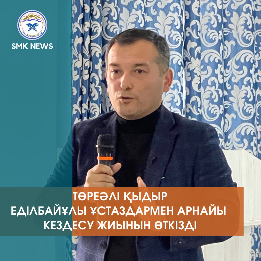 ⚜️Сарыағаш медресе колледжіне келген Ғұламалар кеңесінің мүшесі, М.Әуезов атындағы Әдебиет және өнер институтының бас директорының орынбасары, қауымдастырылған профессор, филология ғылымдарының кандидаты Төреәлі Еділбайұлы Қыдыр ұстаз оқу ордамыздың ұстаздарымен де кездесу жиынын өткізді.⚜️Сарыағаш медресе колледжіне келген Ғұламалар кеңесінің мүшесі, М.Әуезов атындағы Әдебиет және өнер институтының бас директорының орынбасары, қауымдастырылған профессор, филология ғылымдарының кандидаты Төреәлі Еділбайұлы Қыдыр ұстаз оқу ордамыздың ұстаздарымен де кездесу жиынын өткізді.