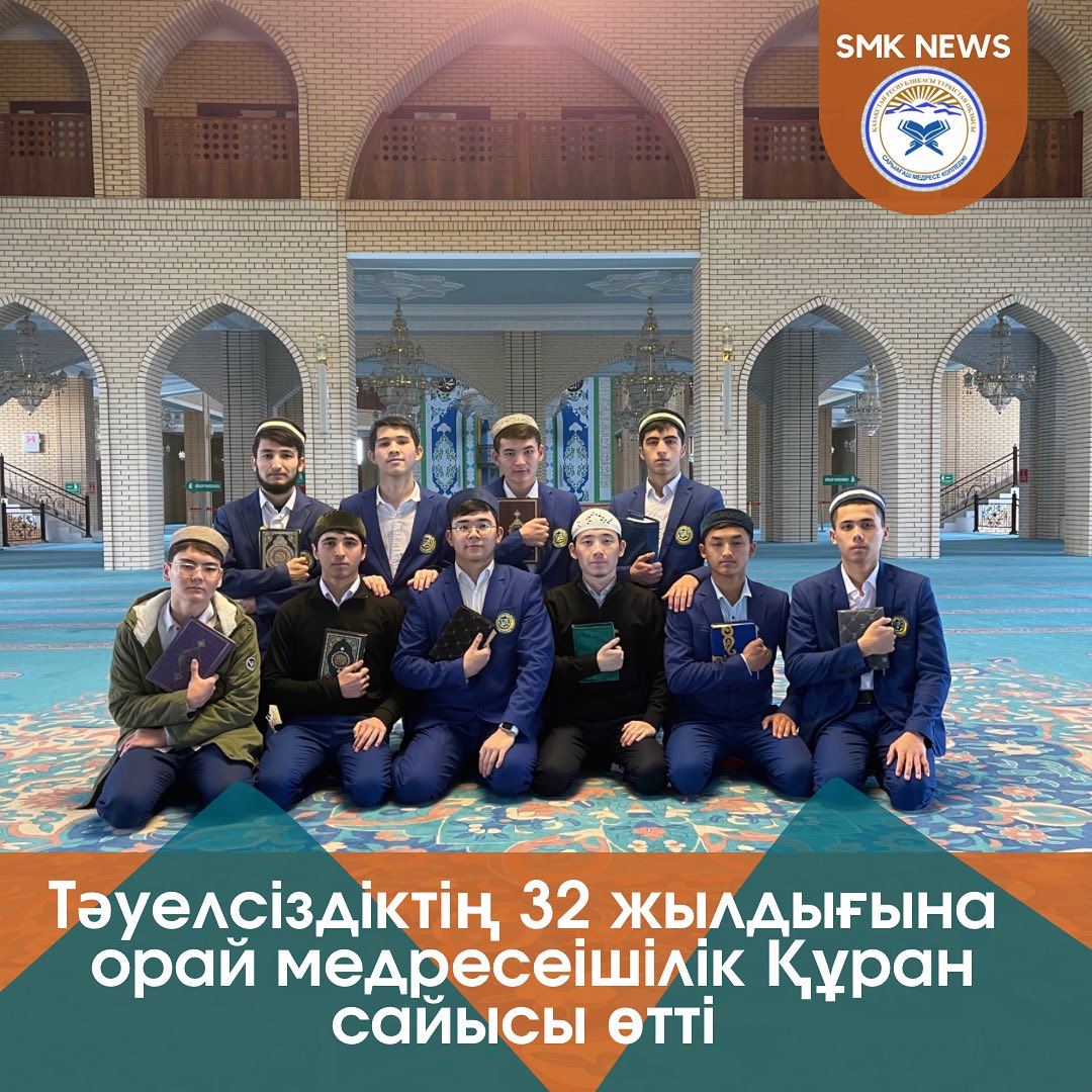 🔰Тәуелсіздігіміздің 32 жылдығына орай Сарыағаш медресе колледжінде медресеішілік Құран жарысы болып өтті. 🔰Аталмыш жарысқа шәкірттер белсене қатысып, нетижесінде әділ-қазылар төмендегі қатысушыларды жеңіске лайықты деп таныды. 1-пара✅1. Досмұхаммед Абдусамад 2-курс2.Усманов Темур