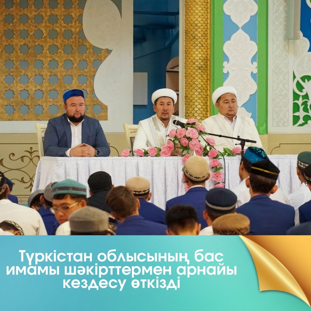 ⚜️ТҮРКІСТАН ОБЛЫСЫНЫҢ БАС ИМАМЫ ЕРЖАН СМАТҰЛЫ ТӨЛЕПОВ САРЫАҒАШ МЕДРЕСЕ КОЛЛЕДЖ ШӘКІРТТЕРІМЕН КЕЗДЕСУ ӨТКІЗДІ
