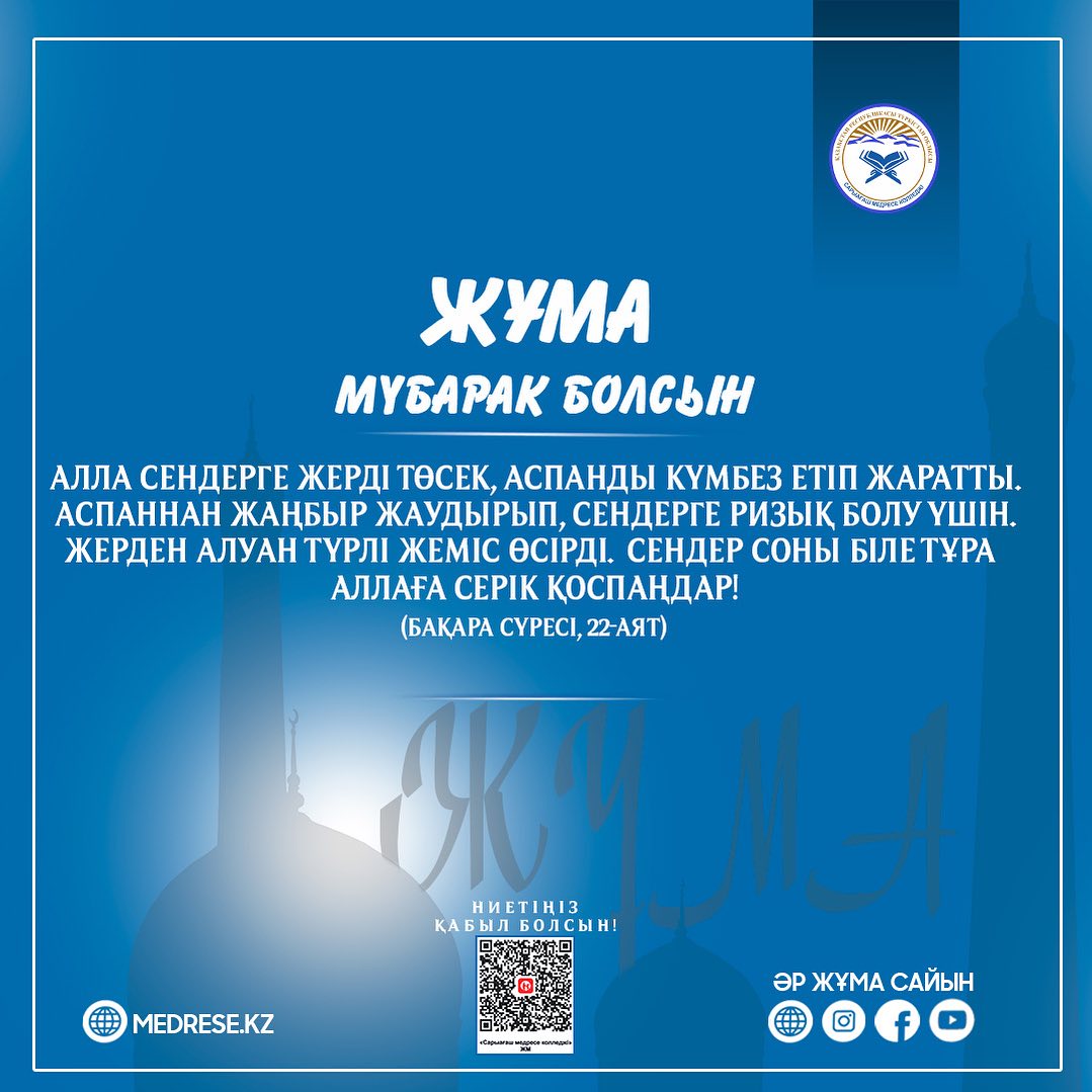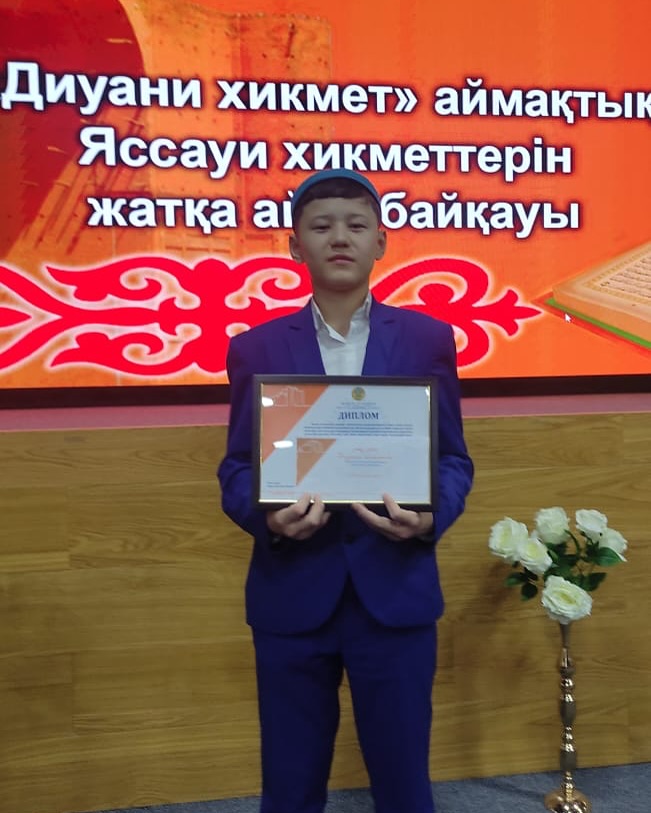 ⚜️Қазақ халқының рухани тұтастығын қалыптастырған Қожа Ахмет Ясауи бабамыздың хикметтерін насихаттау. Өскелең ұрпақты ұлы баба мұрасын терең меңгеріп, зерттеуге ынталандыру. Ғасырлардан сыр шертетін Бабалар аманатын ұрпақтан-ұрпаққа жалғап, Ұлы баба өнегесімен жастарды адамгершілікке имандылыққа, ізгілікке баулу мақсатында ұйымдастырылған облыстық “Диуани хикмет” Яссауи хикметтерін жатқа айту байқауына қатысқаны үшін Сарыағаш медресе колледжінің студентті Сәрсенбі Нұртілек марапатталады