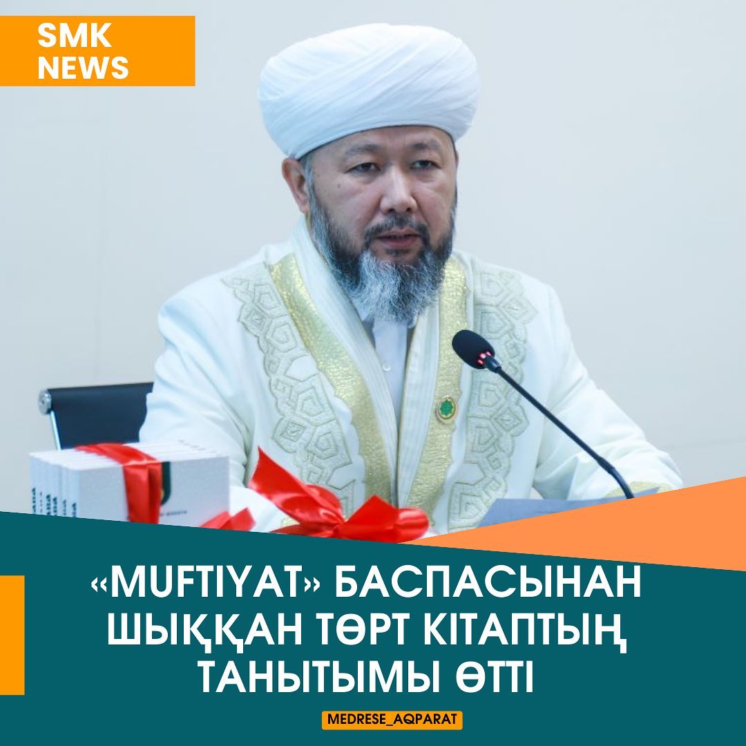 Қазақстан мұсылмандары діни басқармасының «MUFTIYAT» баспасынан жарық көрген төрт кітаптың танытымы өтті,- деп хабарлайды @muftiyat.kz ресми сайты.ҚР мүфтиятыы рәсімге Бас мүфти Наурызбай қажы Тағанұлы бастаған мүфтият ұжымы қатысып, оқырманға жол