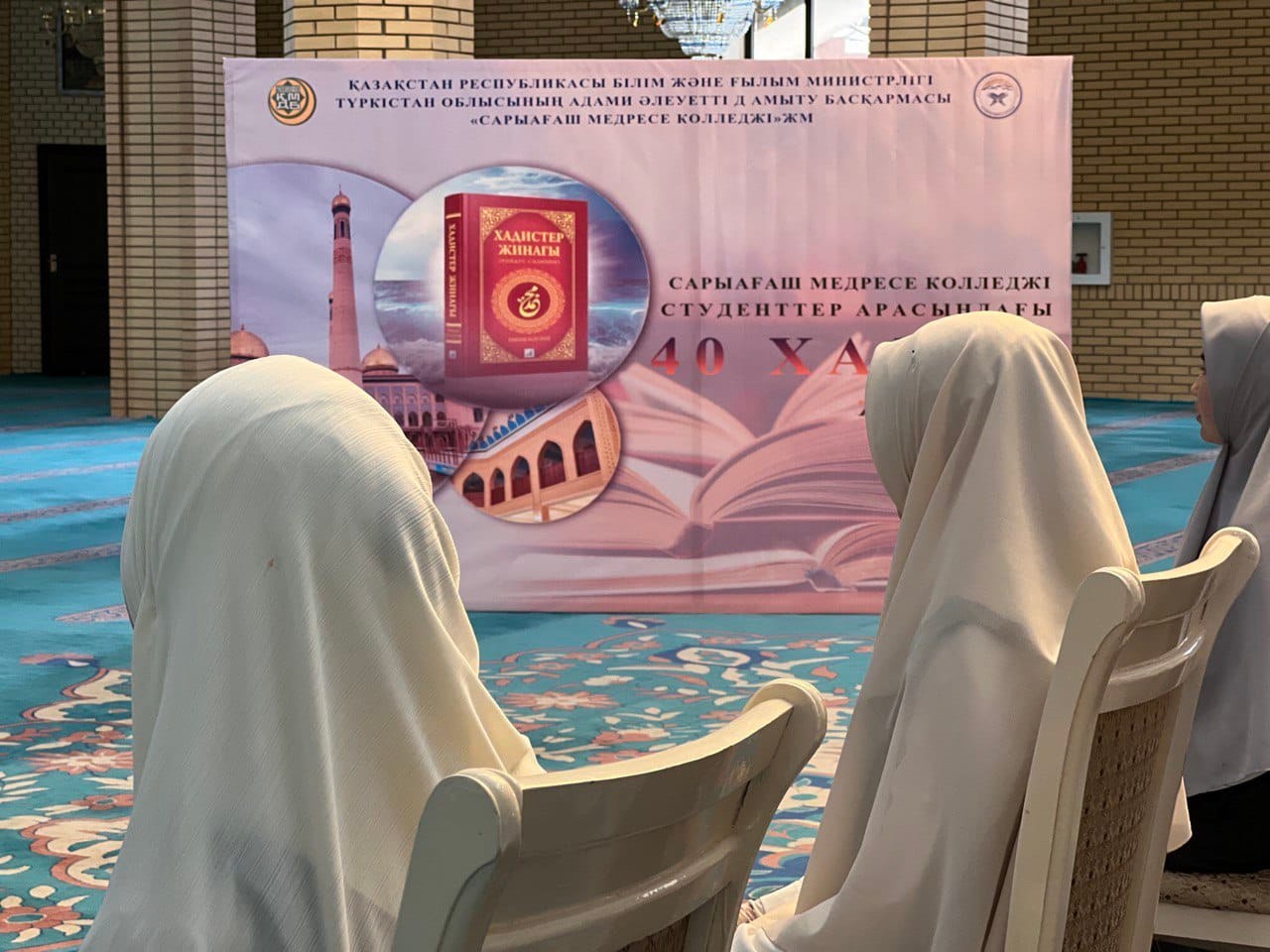 Сарыағаш медресе колледжі студенттерінің қыздар арасында «Имам Науауидің таңдаулы 40 хадисін» жатқа оқу бойнша сайыс болып өтті. Сайыс билет түрінде үш сұрақтан беріліп, колледжіміздің арнайы пән оқытушылары Кадиров Еркін, Ниязов