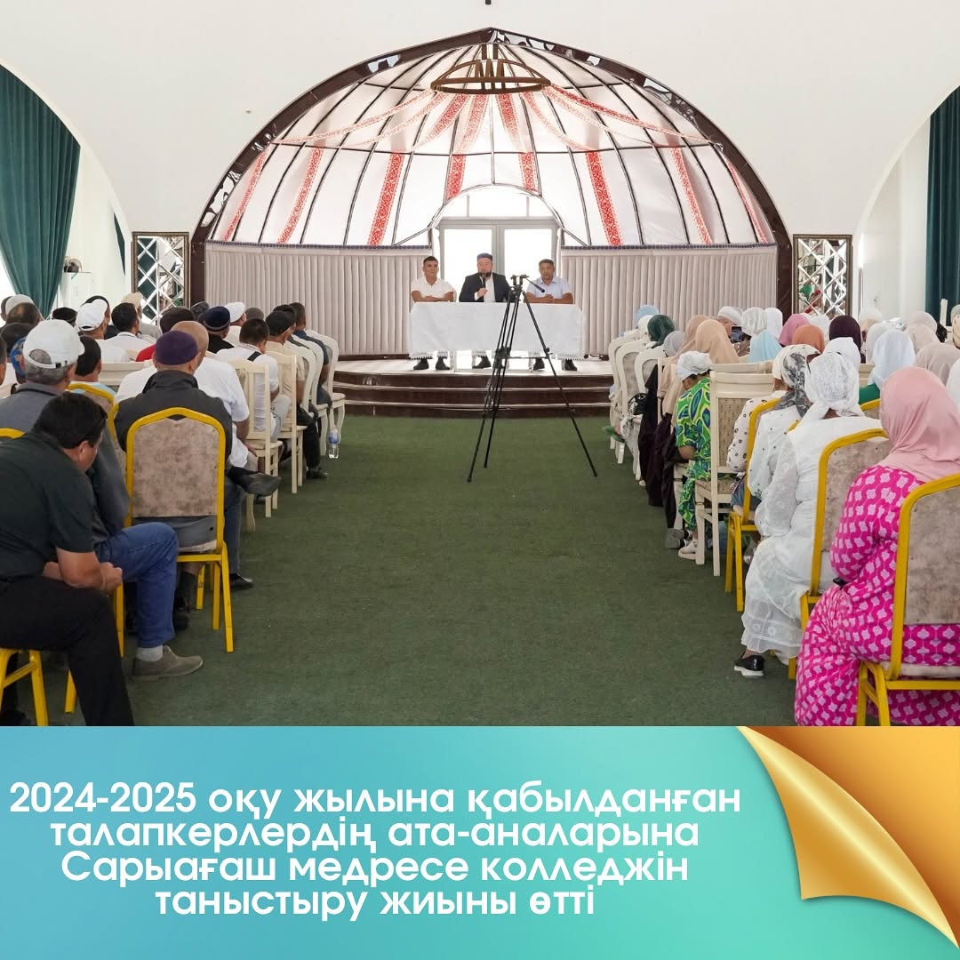 🔰Дәл осы себепті бүгін 2024-2025 оқу жылына қабылданған жас талапкерлердің ата-аналарына “Сарыағаш медресе колледжін” таныстыру жиыны өтті.