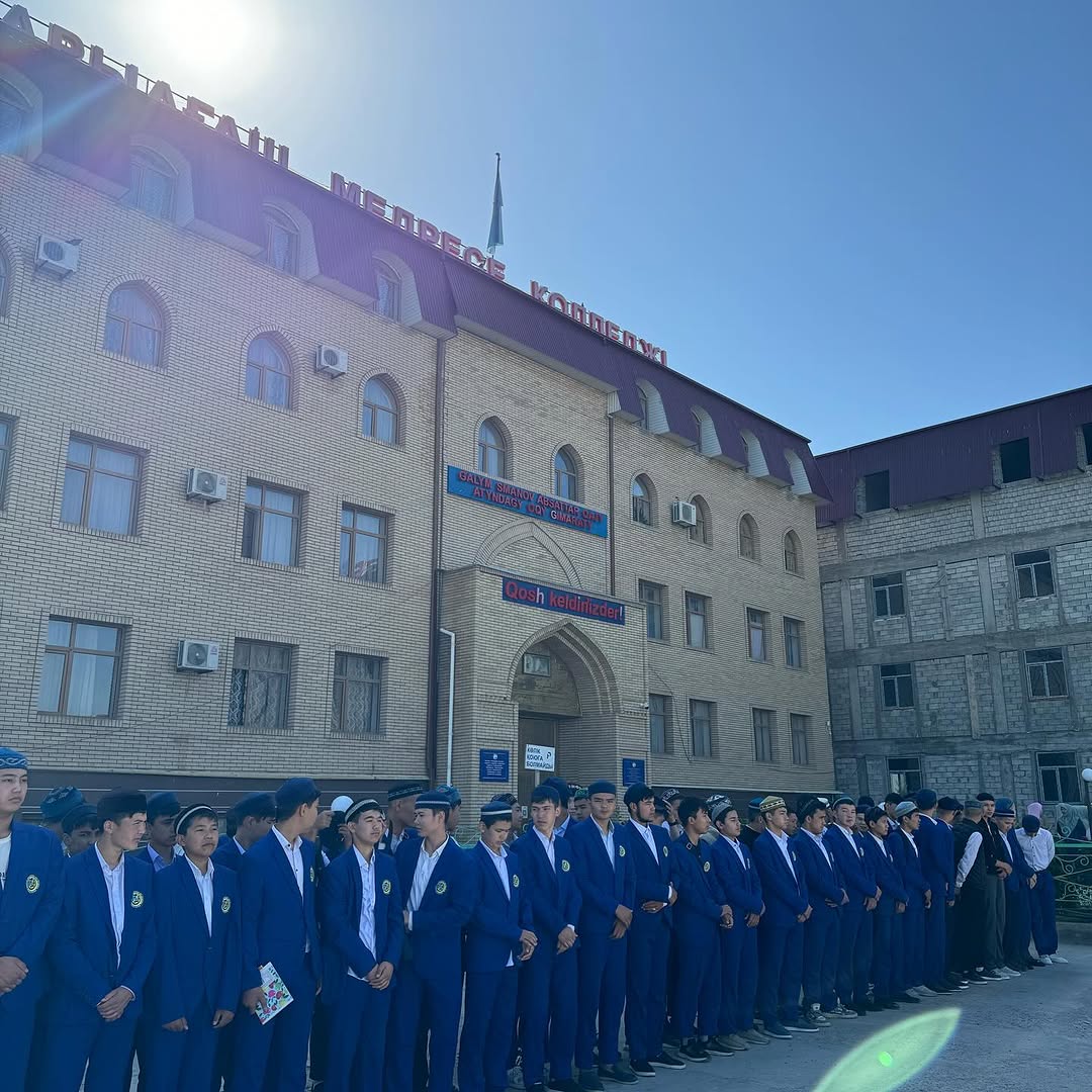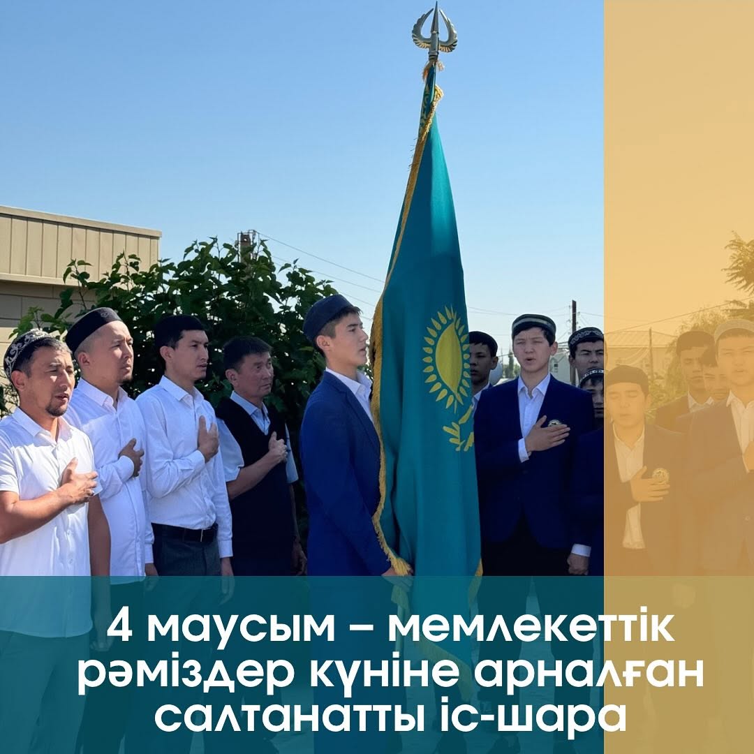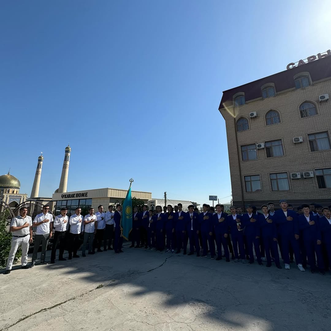 🔰Бүгін Сарыағаш медресе колледжінің шәкірттері және ұстаздары сап түзеп, әнұран орындап, мемлекеттік көк туымызды жоғары көтеру рәсімі өтті.